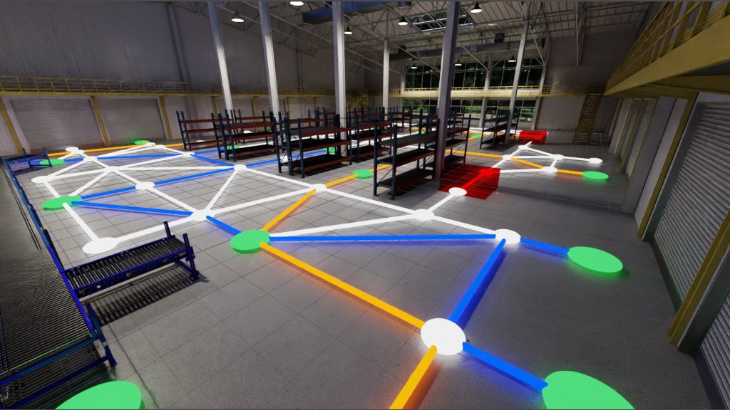 The images below show how cuOpt is used in the Isaac Sim application on the Omniverse platform.